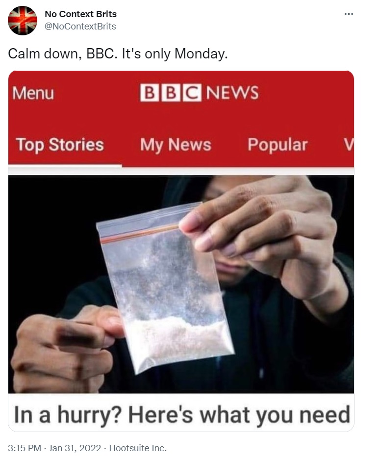 And finally, the BBC confirm we all need a good Monday snort