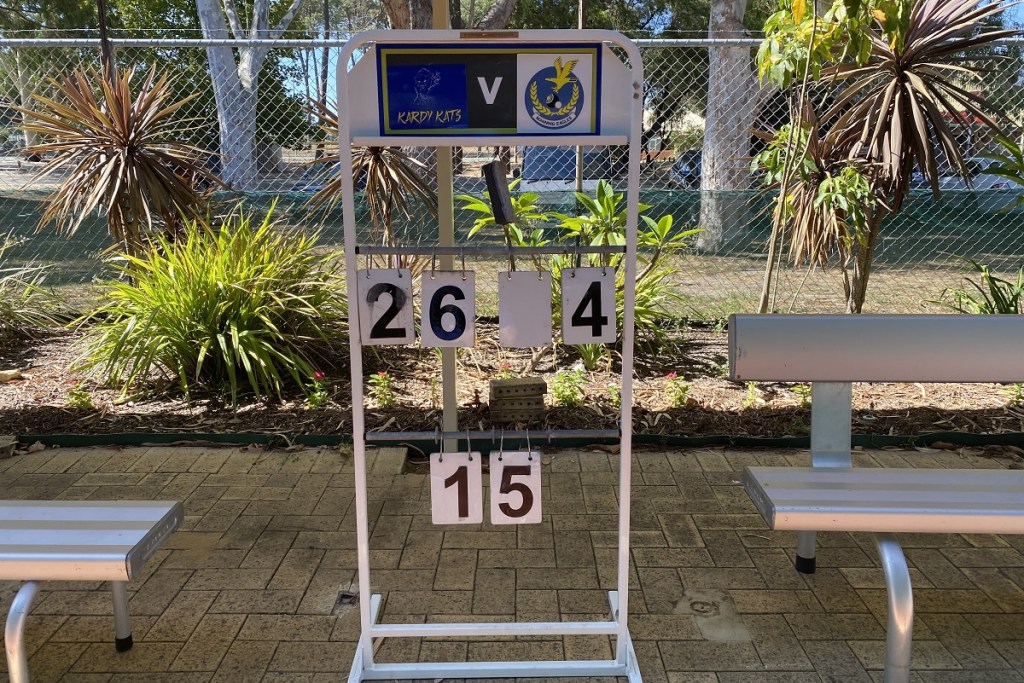 So that was the good side of the trip down the Kwinana Freeway, because I should’ve known it was going to be a crap one when they played Tie Me Kangaroo Down Sport on the loudspeaker during the roll-up, because we got our collective arse whipped big time, losing all 3 rinks and 80-49 overall, with one rink losing by an agonising 23-22, while my team, which had 2 players ripped out of the lineup due to the rubbery rotation policy, was well and truly out of it by the halfway mark on our way to a 32-10 defeat, as we were subject to death by a thousand short ends.