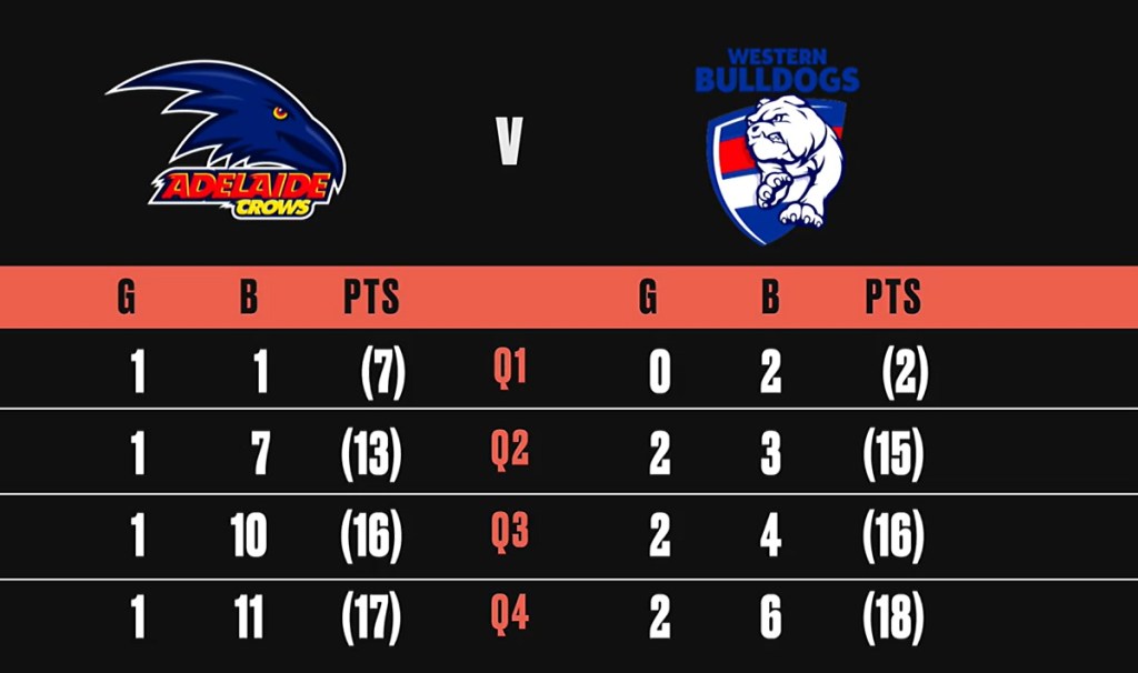 Prior to today, as alluded to in the Fox Footy broadcast, the Bulldogs’ last win outside of Melbourne was Round 1 of 2019, when they defeated Adelaide by 1 point at Norwood Oval.