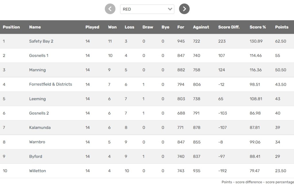 A big result, because with the Gosnells teams having a derby that didn’t quite work out for Gosnells 1, the Manning 4th Divvy team are back within a game of 2nd place: