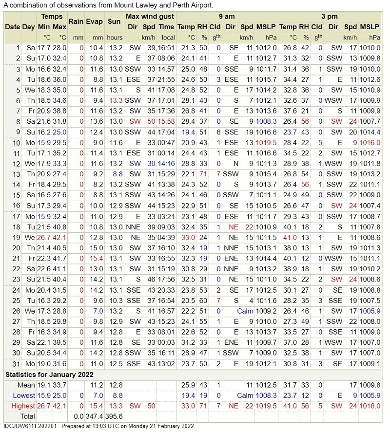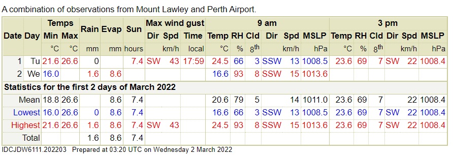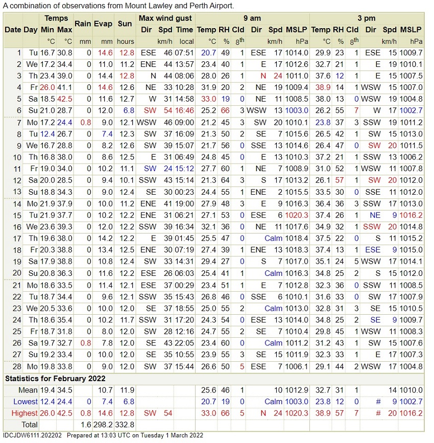 Total Rainfall in the Perth gauge in February: 1.6mm