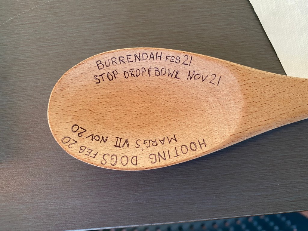 Stop Drop & Bowl are also up into the Top 10, defeating Crawshaw CC on Synthetic Rink 1, with Crawshaw team having a grand total of 7 players on hand (The Not-So Magnificent Seven), as SD&P winning the 1st Set 7-3 followed by a 4-4 draw in the 2nd Set, the only drawn set of the night, and coincidentally, Sharyn’s team jumped into the Top 10 on the same night that John from Manning Up formally engraved their name onto the Wooden Spoon for their performance last season: