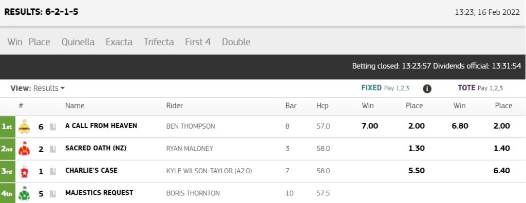 What you don’t you know is on debut at Doomben (16th Feb), Sacred Oath ran 2nd to a horse with a very interesting name, considering the turn of events Warnie endured…..