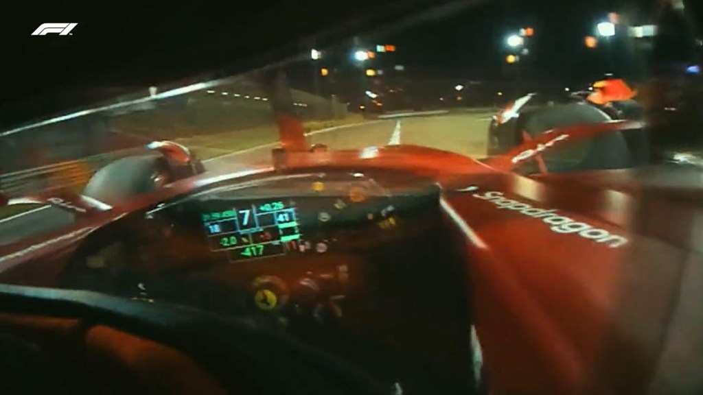 The Charles LeClerc helmet cam view of him fighting Max Verstappen during the Bahrain Grand Prix is top draw material