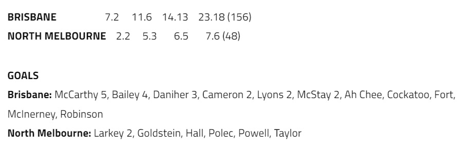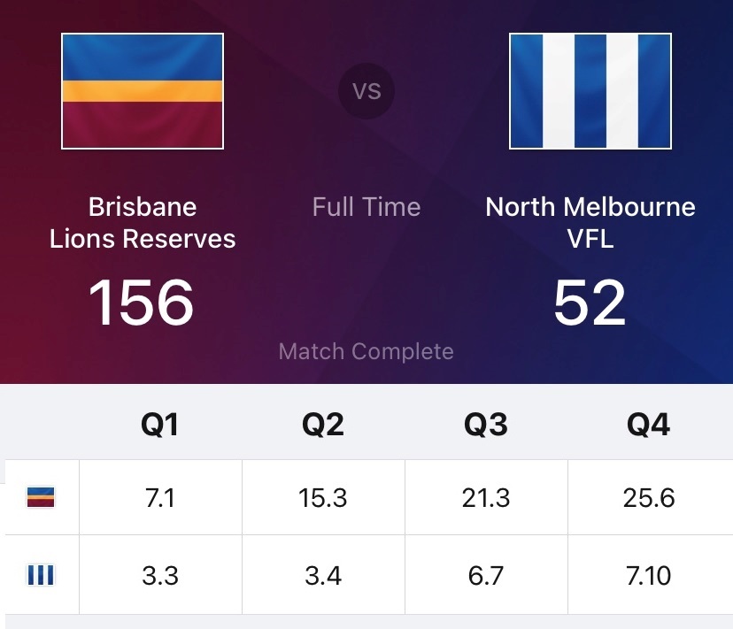 The good news for North Melbourne is that their VFL team went slightly better against Brisbane earlier on Saturday afternoon….