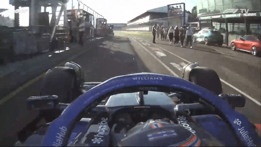 When Alex Albon made his one and only pit stop of the race on Lap 58, after running 57 laps on the same tyre set, there were already fans in the pit lane (Probably VIPs) getting ready for the post-race ceremony, standing only a couple of metres from a live car – Thankfully there was an official there making sure none of them got splattered at 80 km/h.