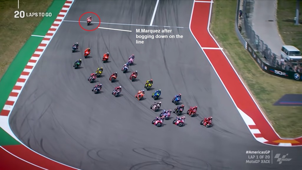 This is where Marc Marquez was at Turn 1 of the MotoGP Grand Prix of the Americas, in his first race back from diplopia