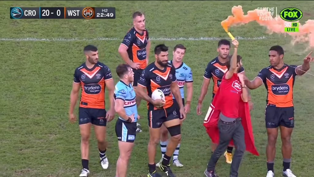 The bloke who carried a flare onto Shark Park during the Sharks vs Tigers game on Sunday was jailed for 3 months