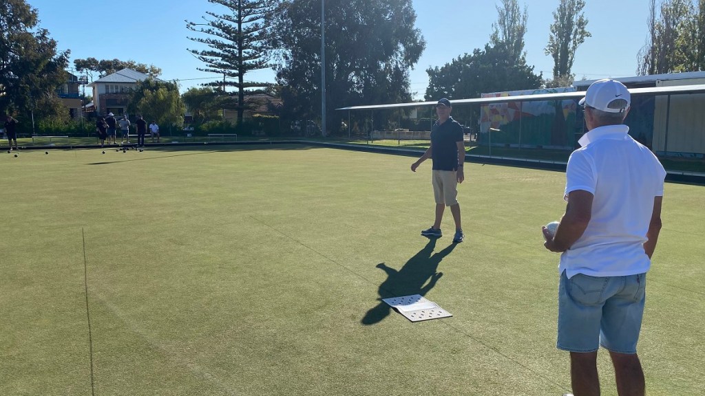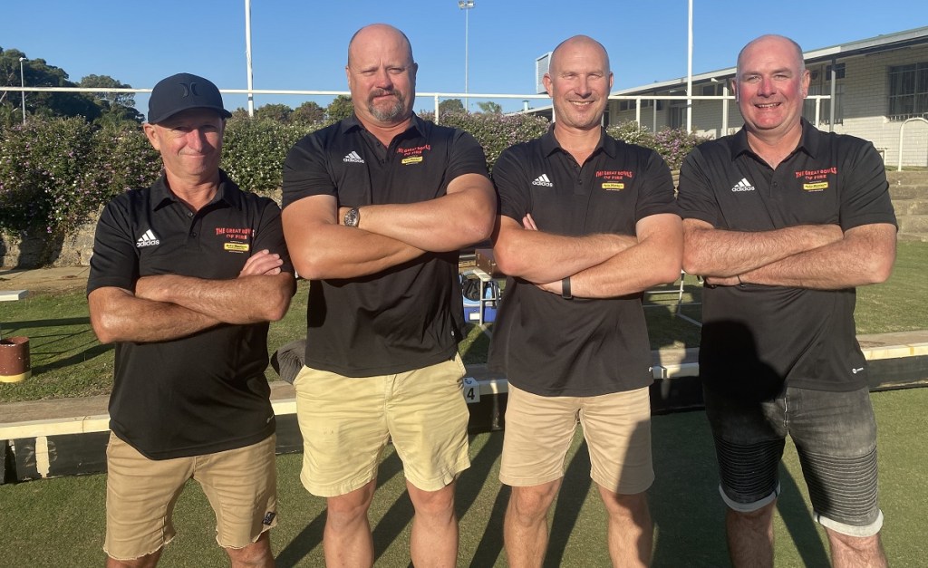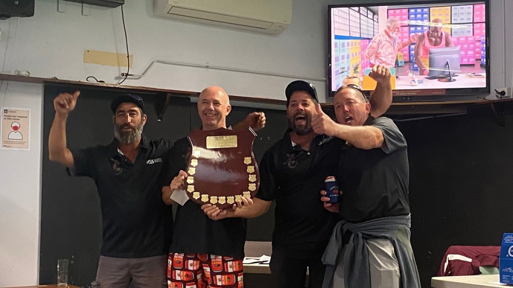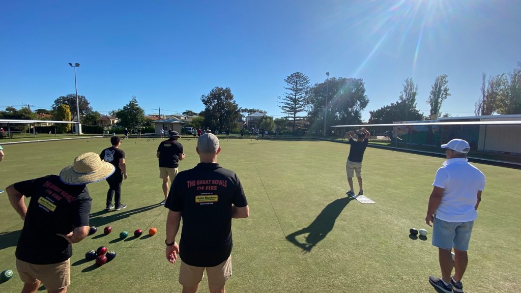 – Our recent champions the Great Bowls of Fire returned to Hilton Park with the lineup of Todd, Chris, Bruce (Who missed 2021) and Rede, and their big new addition since Jack Attack ended is their superb set of sponsored shirts thanks to Jason Haines at AutoMasters Northbridge, although Todd didn’t get the WhatsApp message about wearing matching shorts: