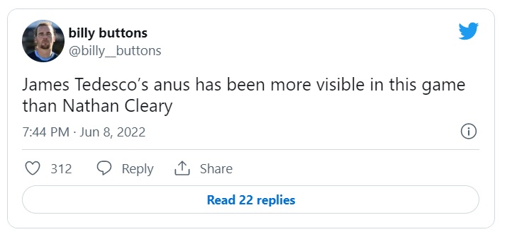 I think it adds to Munster’s insanely great performance that he was able to win Player of the Match despite having a grown man’s crack seared into his mind, which leads me to this Tier 1 Tweet: