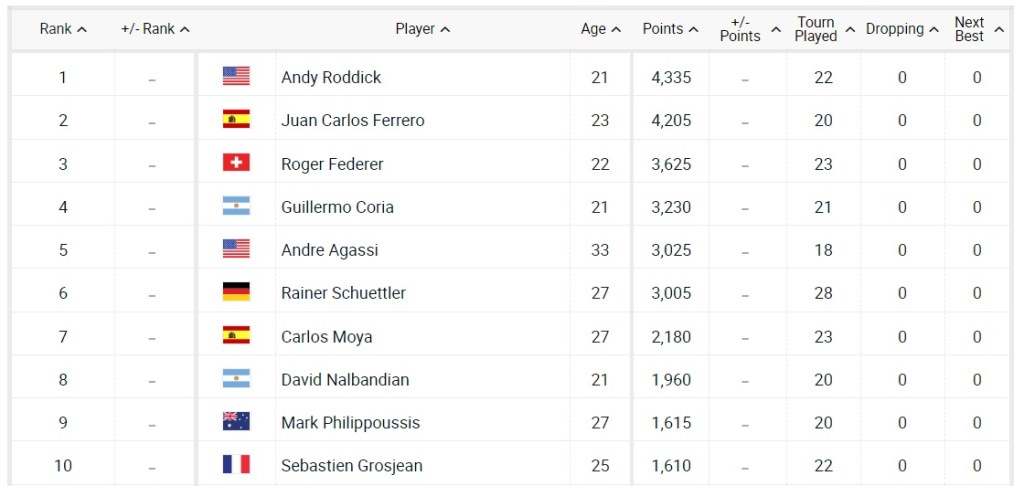 Now, back in November 2003, the World No.1 was Andy Roddick off the back of his US Open win, which is still the most recent Major singles title by an American man, the World No.2 was Juan Carlos Ferrero, the reigning French Open champion and the runner-up to Roddick at Flushing Meadows, and Wimbledon champion Federer was World No.3.