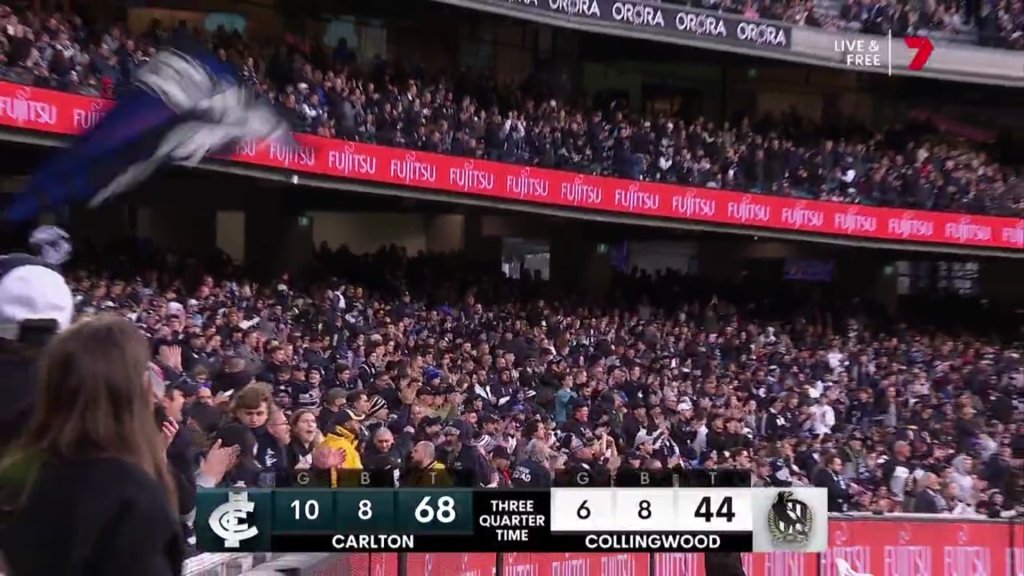 The Blues waste their last forays Inside 50, Patrick Cripps gets caught holding the ball with 35 seconds left, and Collingwood come from 25 points down to win by a bee’s dick, their 11th win by under 12 points in 2022.