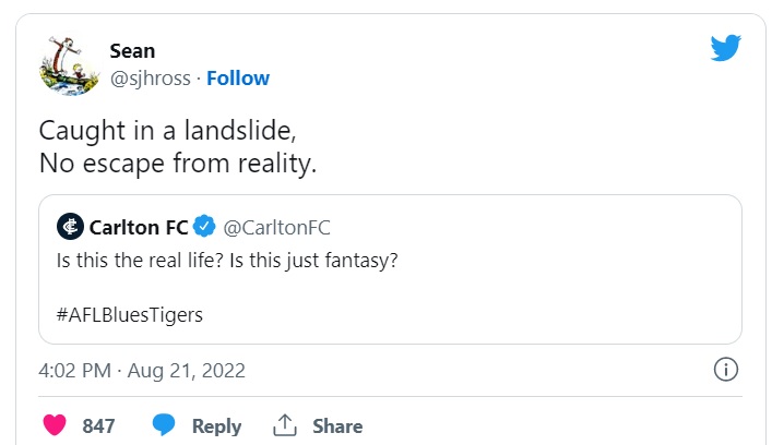 Then again, St Kilda fail every year, so them going to crap isn’t as funny as Carlton.