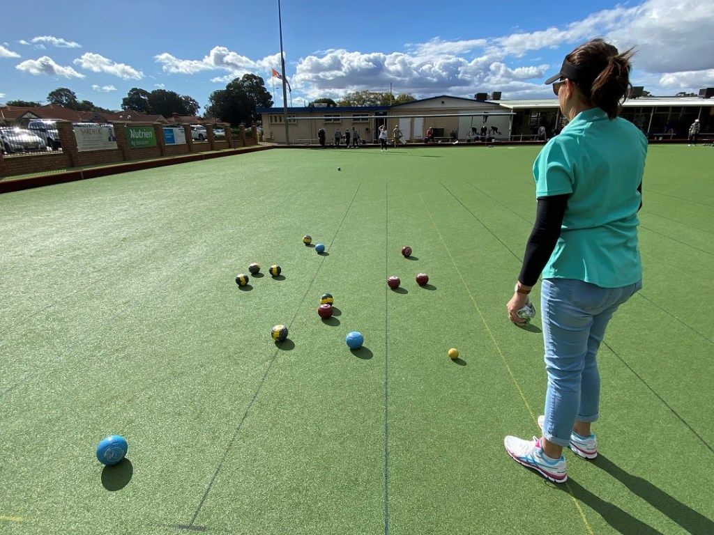 That end finished with Jen gazumping us by landing 2 bowls on the jack and still only holding 1 shot as I somehow held on to grab 2nd, but the dastardly duo of JT and Adams steadied and led 7-5 halfway through the game, and despite giving away a 3 after a botched drive, we subsequently dropped the hammer with some textbook pairs play and had the game wrapped up 14-5 with an end to play, as the yellow strip on our bowls (As you’ll see below) left several people suffering epileptic fits.