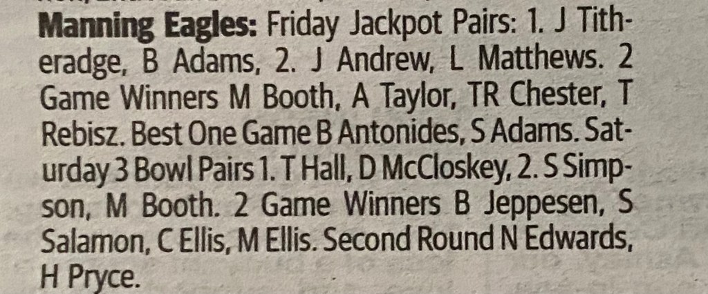 Then on Friday I teamed up with my Division 2 skip Brett Adams, who had asked me the previous Friday if we were keen to play together once more (A clear yes was my answer), but me being me I thought he was talking about the Friday Jackpot Pairs….