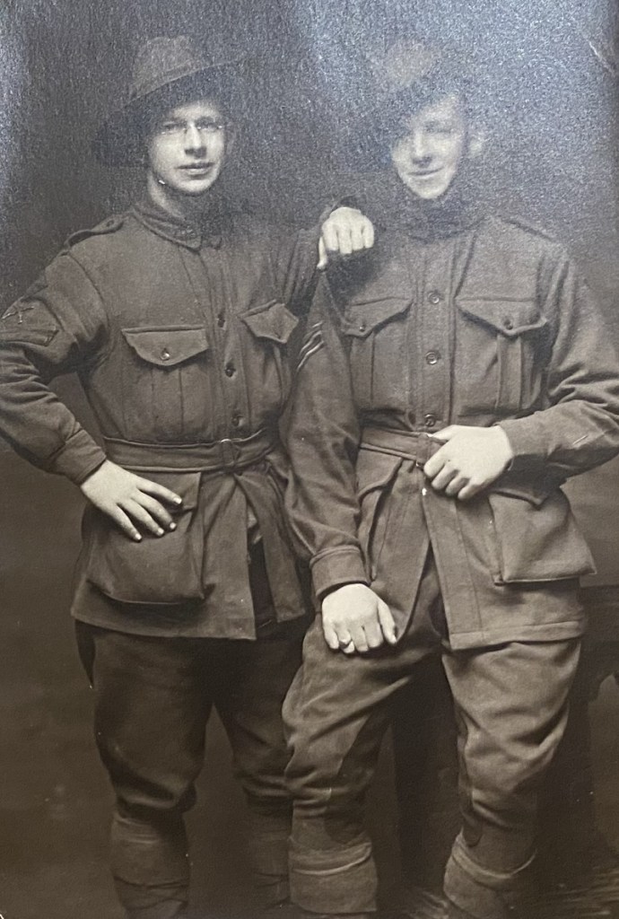 Also, I couldn’t find any photos of Walter when we did the cleanout (He is described as bald and wearing a bowler hat so how hard could it be), but I did manage to finally discover one of J.A Burke (On the left), dated May 5, 1918 from the Western Front in France:
