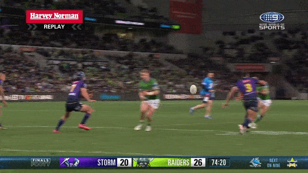 The It Happens moment of the 2022 season… the Raiders’ Seb Kris with the FALCON TRY ASSIST to end the Melbourne Storm’s season