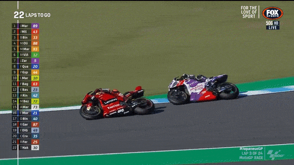 But in a dry weather display that was years in the making, Miller ripped through the Top 6 with some downhill braking, and was into the lead by Lap 3 after passing Jorge Martin out of the bridge, he never trailed after that, and proceeded to consistently lap 3-tenths faster than everyone else for the rest of the race.