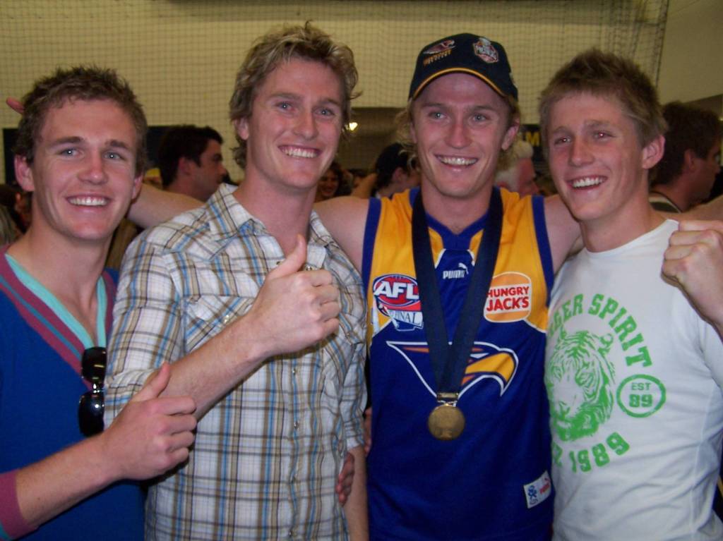A record 786 games for a set of brothers, surpassing the Danihers, and as I close off, here’s all the brothers together after Adam played in the Eagles’ 2006… This was so long ago that Joel was still two months away from being drafted by Geelong, and Scott was only 16.