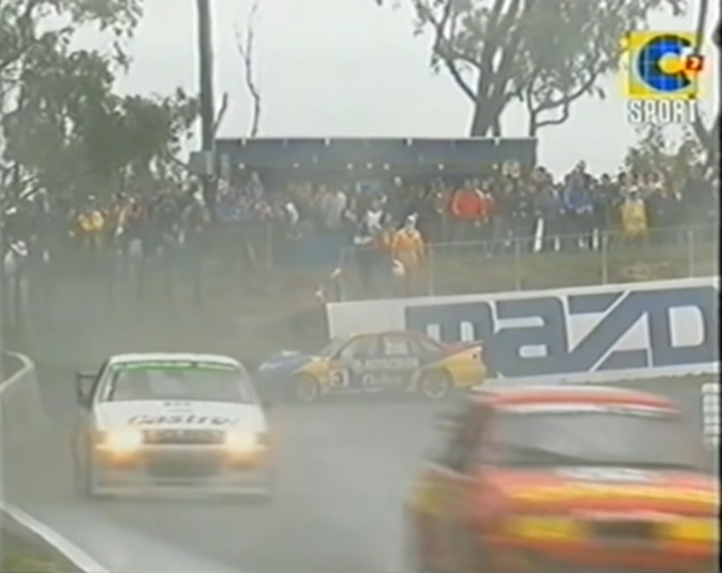 With the Top 2 bolting away, Skaife would pass Johnson for the lead at Murray’s Corner to end Lap 2, never to be caught again, as the rain would set in within the first hour, with the track still dry enough to stay out on slicks for a couple of laps, before eventually everyone swapped over to wet tyres, with fog setting in on top of the Mountain.