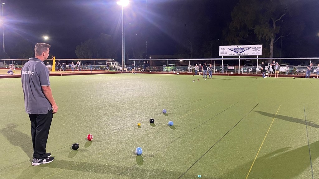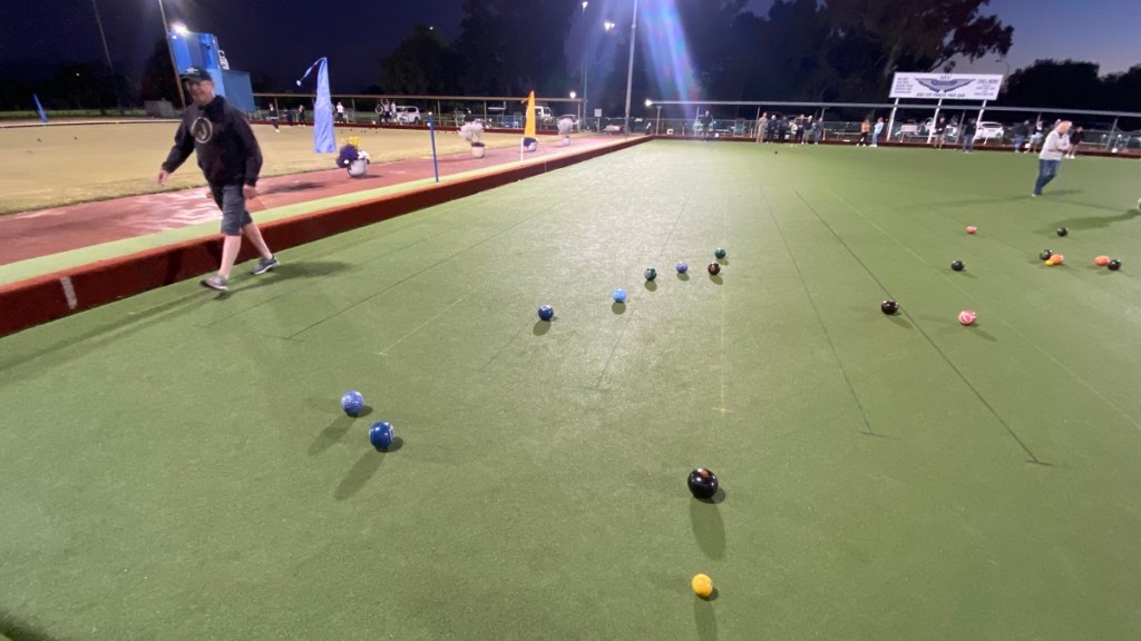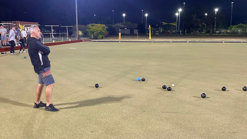 I’d say they should’ve started with the Pizza Shapes, because Macatac 2 won the 1st Set 11-1 (By sheer coincidence Macatac 1 also had an 11-1 set win on the night), but Craig, Peter, Tristan and Ian got the mat back in the 2nd Set and managed to eke out a 3-2 win to send the game to a tiebreak, but on a long end under the lights to make the grass as slow as buggery, the Como Bowling Club expats got a toucher early on and eventually held 2 to get the points, leaving them in the Top 10 after Week 1 of play.