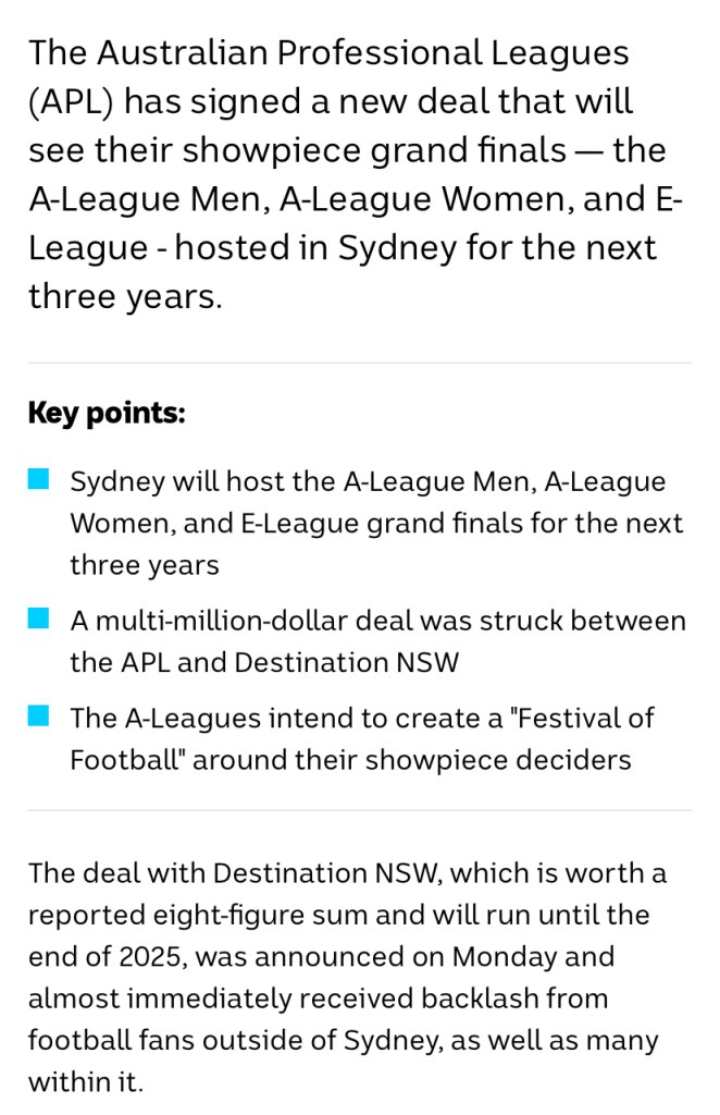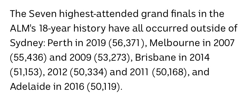 I get the feeling the most glaring paragraph in that ABC report is this one, which should sum up how stupid it is fixing the thing in Sydney at what I assume will be Allianz Stadium and a barely 45,500 capacity: