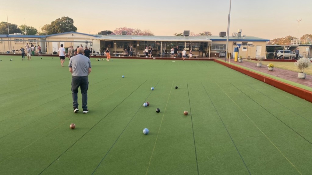 On Grass Rink 3, Salty Towers took on the CDs, who once again had to make do without Helen as she had to go up to Port Hedland, meaning Marg’s husband Dave made another cameo appearance, but it would be Basil Fawlty’s favourite team who ended the year with a victory, winning the 1st Set 6-3 then taking the tiebreak out of the equation by drawing the 2nd Set 6-6, after being 6-2 with 2 ends to play – The Salties held 2 on the 4th End, then 1 on their last end powerplay.