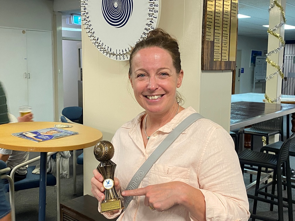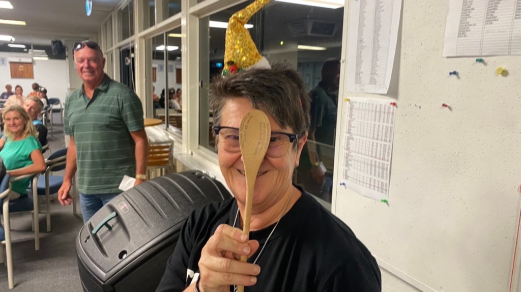 Eventually we got through it, at the cost of our vision, and following a couple of hits on opposition bowls, the holder/winner was Jared from The Lenny’s to take the $30, 2nd prize ($20) went to Sue from the SPCG Spinners, and 3rd ($20 voucher) went to Kelly from the CD’s, and that’s the second time this season that Kelly has landed in the money for the Corner To Corner, so it appears that she tends to bowl better chucking it from one end of the green to the other, rather than bowling from one end of the rink to the other.