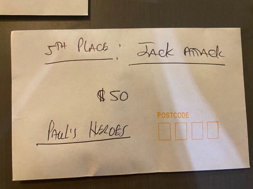 So once the ATO had done a raid on our prize pool, this season’s Champions took home $250, with $150 for 2nd, a Don Bradman ($100) for 3rd, 4th got $75, 5th got $50, and 6th was $25.