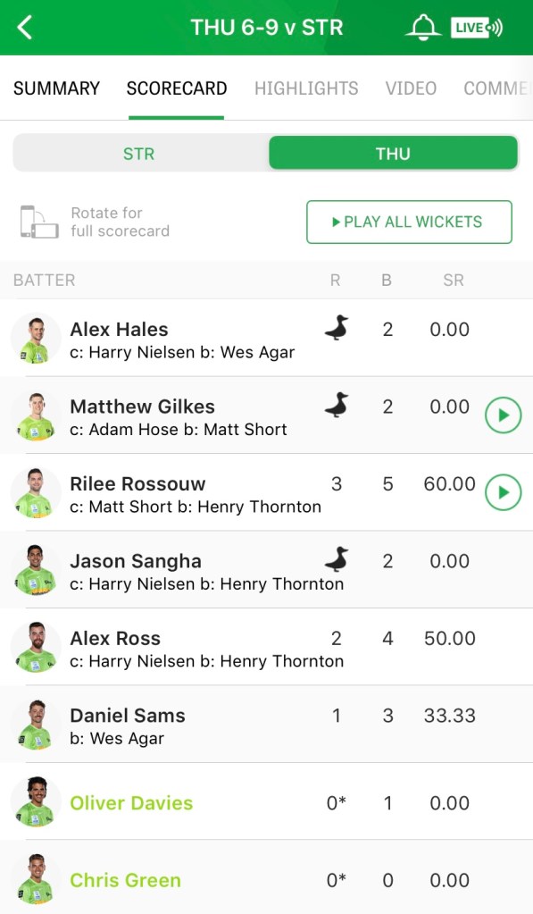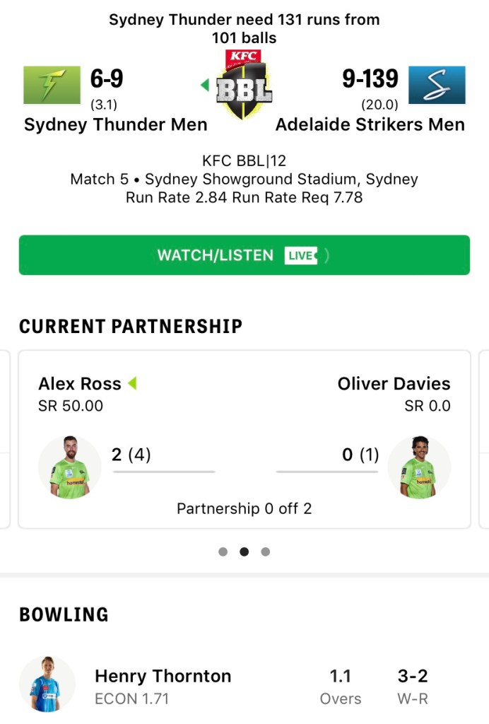 The Thunder at one stage were 6-9, which is coincidentally the position the Strikers had them in for all 6 overs.