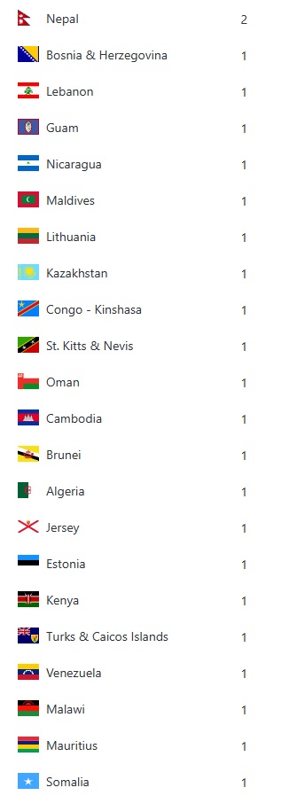 United Kingdom = A big year for the Poms, flicking off 2 Prime Ministers, extending their winless run in Australia to 15 Test matches, tanking their own economy, getting rid of Joe Root as Test captain, winning the T20 World Cup, the Queen had one meeting with Liz Truss and decided 96 years on the Earth was enough, and they went from 596 views on JT’s in 2021, to 1,406 in 2022.
