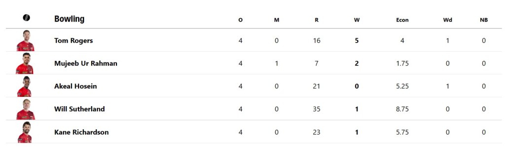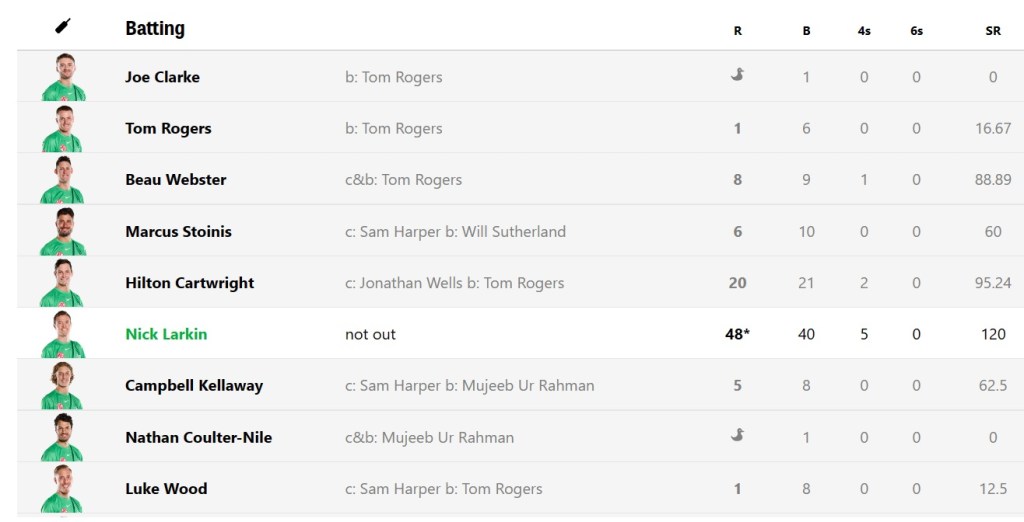 Coincidentally, both Tom Rogers scored 1 run with the bat at the MCG, although the Renegades’ Tom Rogers was the better Tom Rogers during the game, claiming Player of the Match with his bowling figures of 5 for 16.