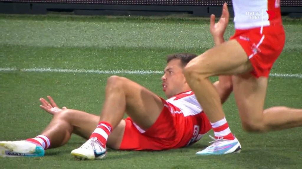 Oliver Florent in Round 4 of 2023, going absolutely nuts when he thought he’d kicked a goal after the siren for Sydney to defeat Port Adelaide, only to realise he’d fallen a metre short thanks to Callum Mills also prematurely celebrating and allowing Aliir Aliir a free run at the ball