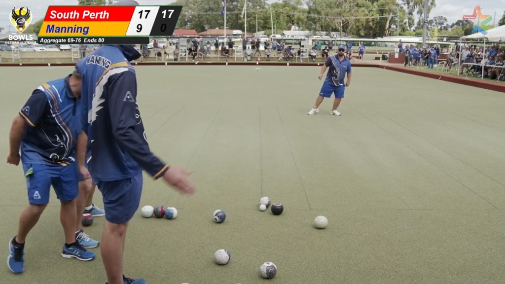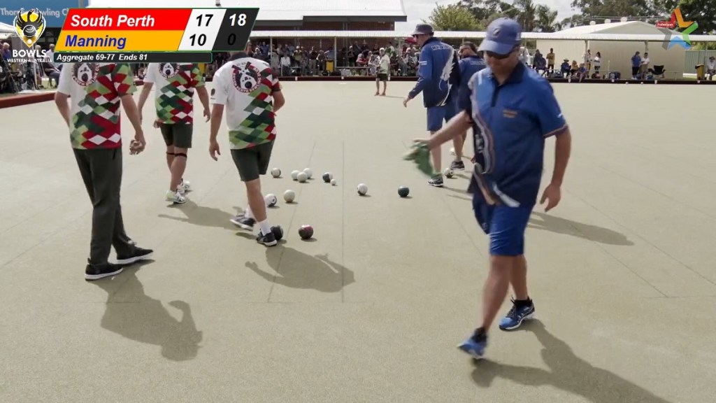 – On the 83rd End, Scott O’Brien landed a bowl a foot behind, which was surviving all the way down to the skips, and Bresland this time had to try and kill the end with South Perth having no chance of a big score, Hyatt added another bowl and simply fattened up the target, and going for another drive, Bresland wicked off Hyatt’s bowl, got the jack clean and followed it into the ditch, but it was only 1, so the Grand Final would go to an 84th End, with South Perth needing to win an 8 badge to send it to extra ends.