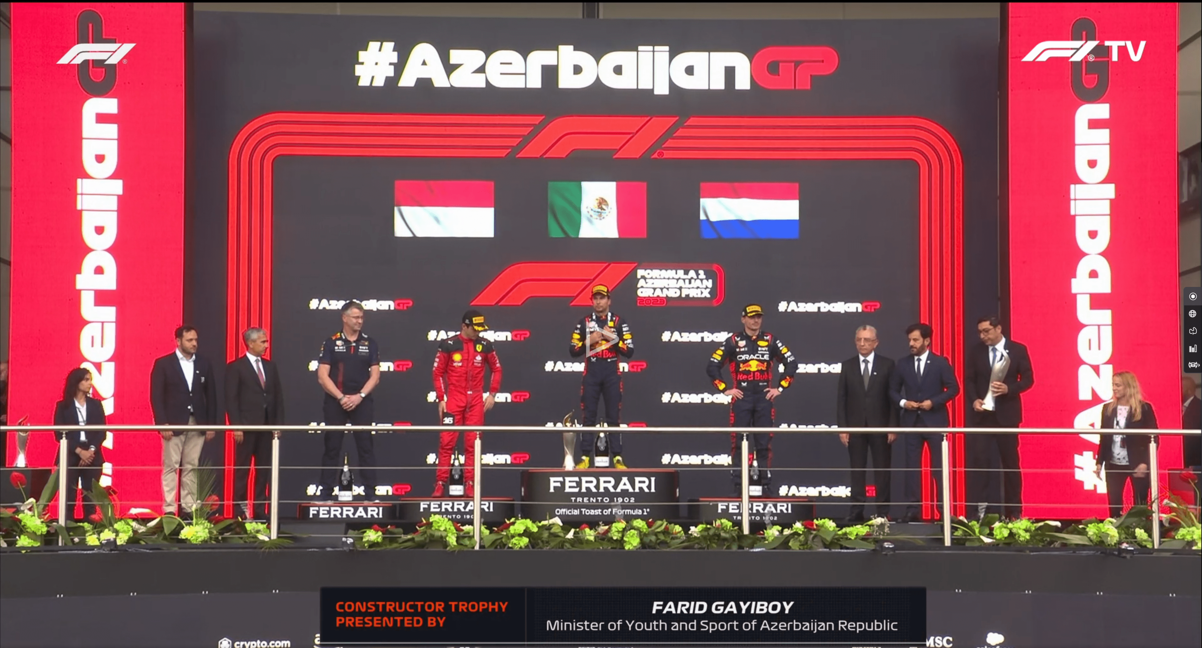 Unfortunately, nobody told the bloke from FOM who was doing the graphics for the podium ceremony on Sunday when Farid presented Red Bull with the winning Constructors’ trophy.