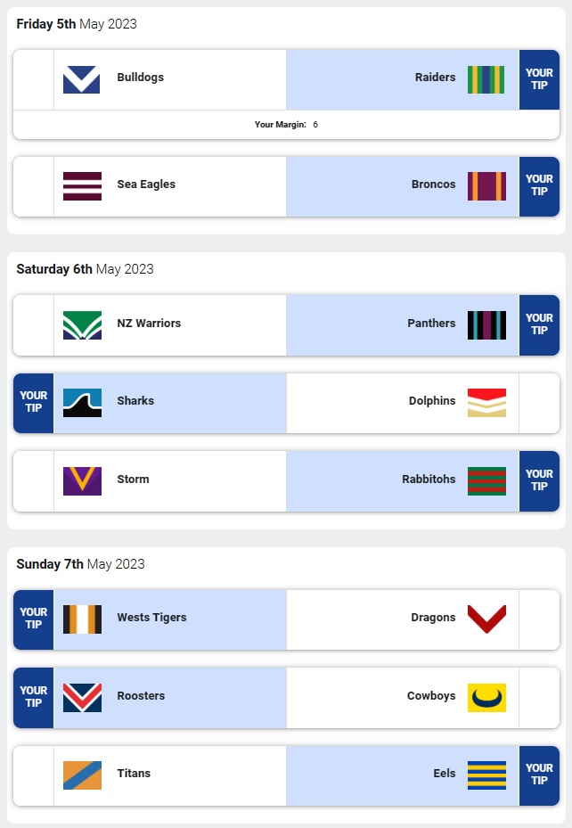 Another resounding win for the Lock last week thanks to the Sharks mutilating the Cowboys on Thursday night, so I think my record has now gone to 6 wins and a draw from 9 games.