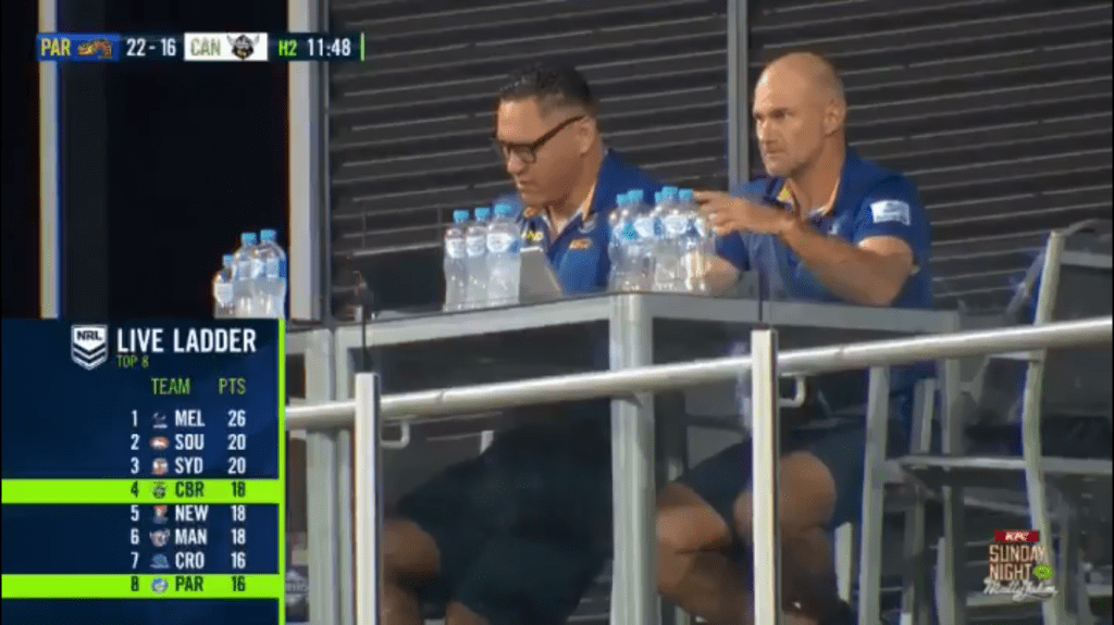 – And lucky last, the Bulldogs and Eels get the traditional King’s Birthday Monday slot at the Olympic Stadium, and it’s a milestone game for Brad Arthur as he matches Brian Smith’s record of 243 games as coach of the Eels, and coincidentally, 243 is the number of water bottles Arthur went through during that game in Darwin in 2019: