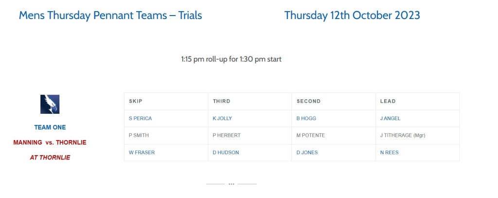 So friends, the Manning teams for our opening bowls trial games against Thornlie on Thursday have finally been released after weeks of fingernail munching (Our first pennant games are coming up on October 26), and for the first time since the last set of trial games 12 months ago, I find myself playing in a Manning top side (The third time will come this Saturday), thanks to a few of our regular Thursday starters not playing, namely AJ Heal who is too busy representing WA in the Australian Over 60s Sides Championships.