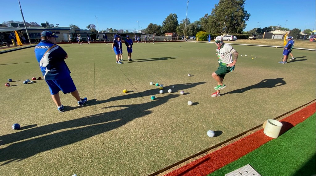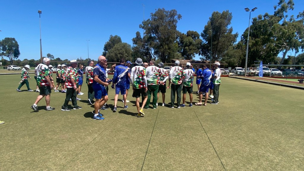 A pre-game circle as both the Manning & South Perth men’s & women’s teams (Who were both playing on the same green) got together to pay respects to Martin Downey, father of Manning’s David Downey, who had died in the days prior to Round 1 (The connection being that Dave played for South Perth only a few years ago, several South Perth players had played with Martin, and Martin himself played midweeks at Manning during my first season)… we didn’t even know until 1pm on the Saturday if Dave would even play, but he did, and we all got around him.