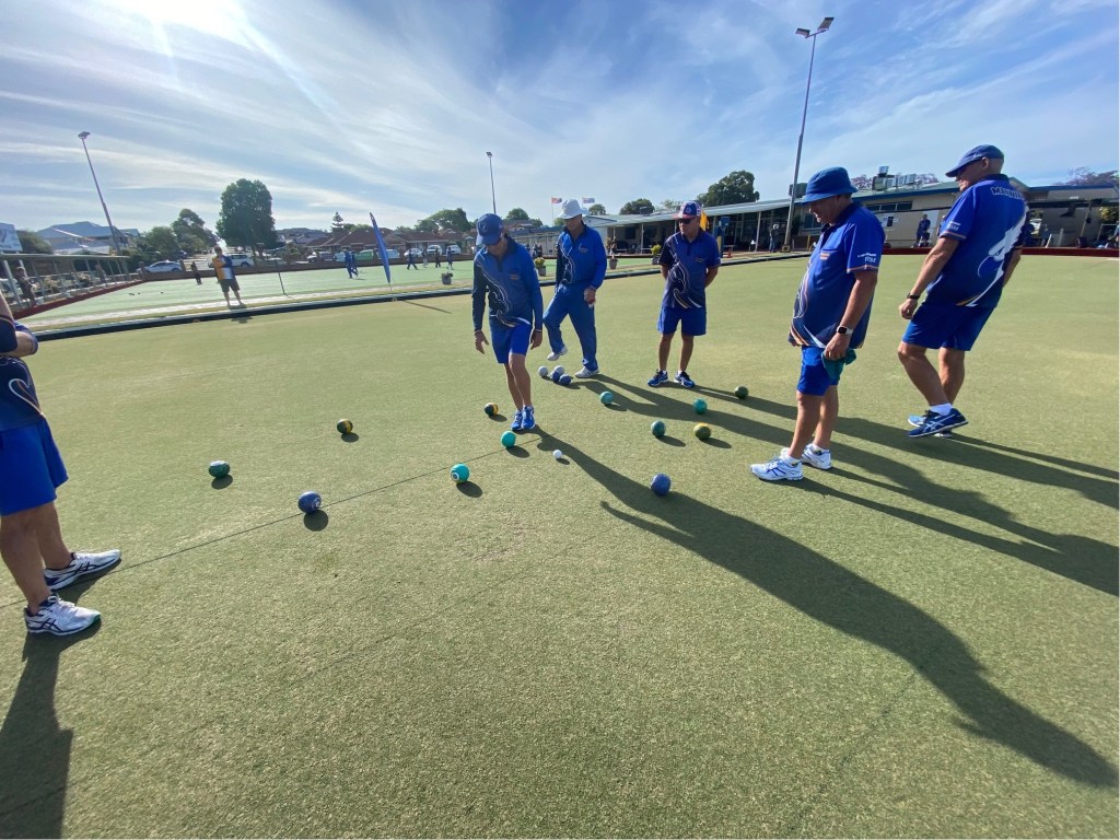 Bob Bandy’s rink (Jim ‘Papa Smurf’ Gimble, Greg Hogg and Brett Adams) trailed 13-20 after 15 ends against the Country/Welsh combination of Billy Fraser, Darrel Hudson, Phil ‘Floppy’ Herbert and Nigel Rees, then played 5 superb ends to go from 7 down to lead 23-20 with an end to play, and by the final end, the aggregate was so precarious that they put enough close bowls in to convince Billy not to play his last bowl and take the shot (Held by Nigel), giving Bandy’s crew a 23-21 win, their 3rd rink win from as many games.