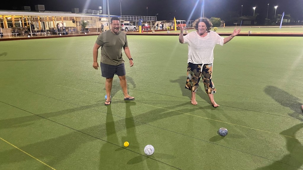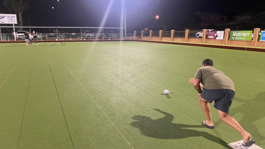 After crossing the halfway mark last week, Wednesday night marked the start of the pointy end of this edition of Manning Jack Attack, the greatest social bowls tournament between Manning Road and the Canning River, and of course this was the last Spring edition before the beginning of summer on Friday, and for once the weather was quite pleasant after weeks of copping a howling easterly and temperatures in the high 30s, as the temps hovered around 21 with the sea breeze in, but the big change for the grass players was the humidity was up, so the dreaded dew kicked up and slowed the green right down.