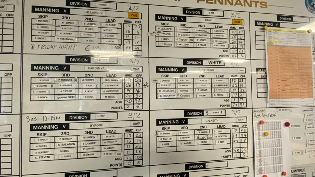 And, to my amazement, a 13-shot victory was ultimately enough to win the drinks vouchers for that Saturday of pennants at Manning, because the next closest win was a 9 shot win in Division 3 by Ross Dolton, and Division 5 by Richard ‘Half’ Price, who will tell you his third Grahame Maples cost the rink several shots due to shoddy measuring.