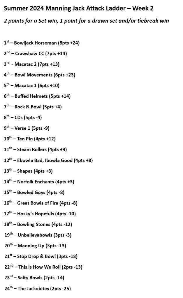 After the longest heatwave since last week, and before another heatwave rolled in on Thursday we moved on to Week 2 of the Summer 2024 edition of Manning Jack Attack, and love was in the air as we bowled on Valentine’s Day for the first time in 6 years, and it felt like all we needed was John Paul Young to liven up the atmosphere…