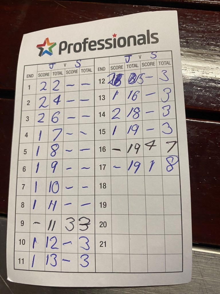 So with the score still 19-7 with two ends to play, both pairs seemingly accepted the reality of the situation and played out the 17th End like any other end, and myself + Neil ensured we were never going to drop 4 or 5 and prolong the wait for victory, and that final end would’ve gone down to a measure (Which we would’ve won), but seeing as it made no difference to the result, we gave Craig & Steve the shot and made the final score 19-8, which it shall remain in the history books….