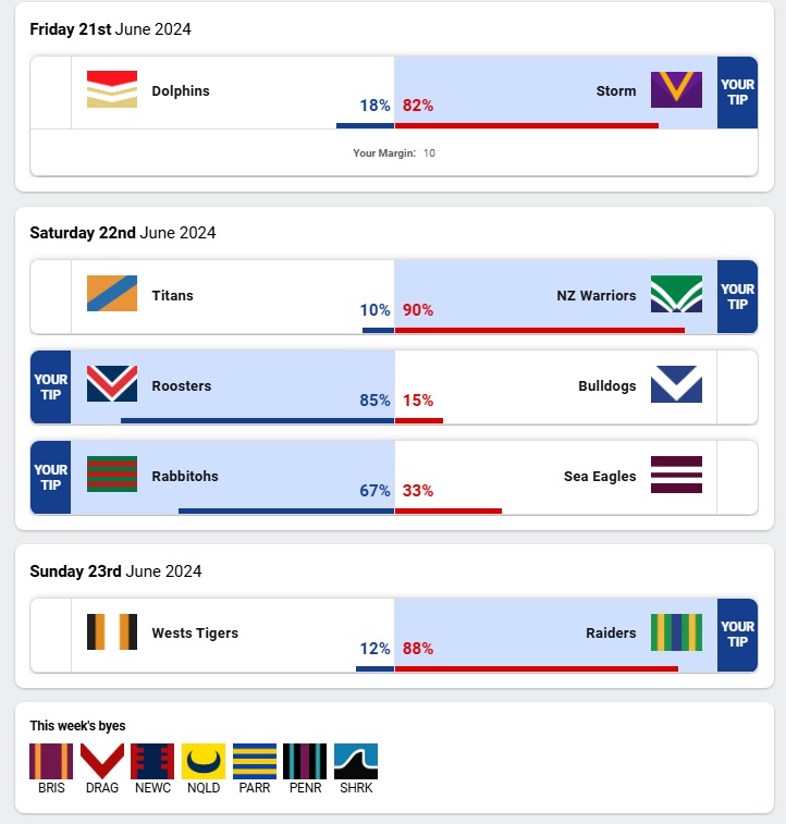 And now for the Succinct NRL Tips for Round 16, here we go…