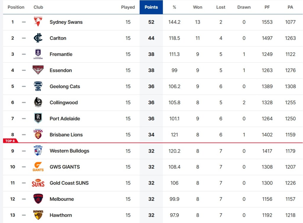 Hawthorn are the lowest-ranked 8-7 team in history…