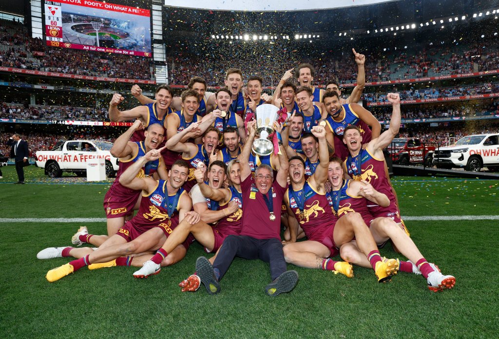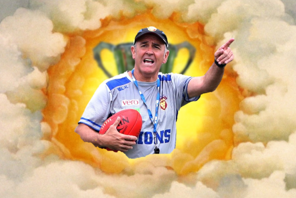 “And so after much heartbreak, the great journey had ended, the Faganists had won the premiership at last, and the humble moustached prophet Lethal Leigh did hand the premiership cup to disciples Neale and Andrews, who raised it with great ceremony, after inviting disciple Zorko to join them, for he had endured the great journey longer than any Lion…”