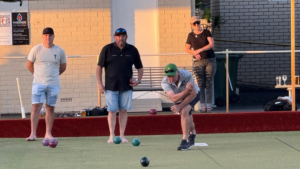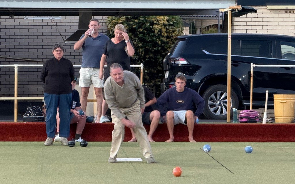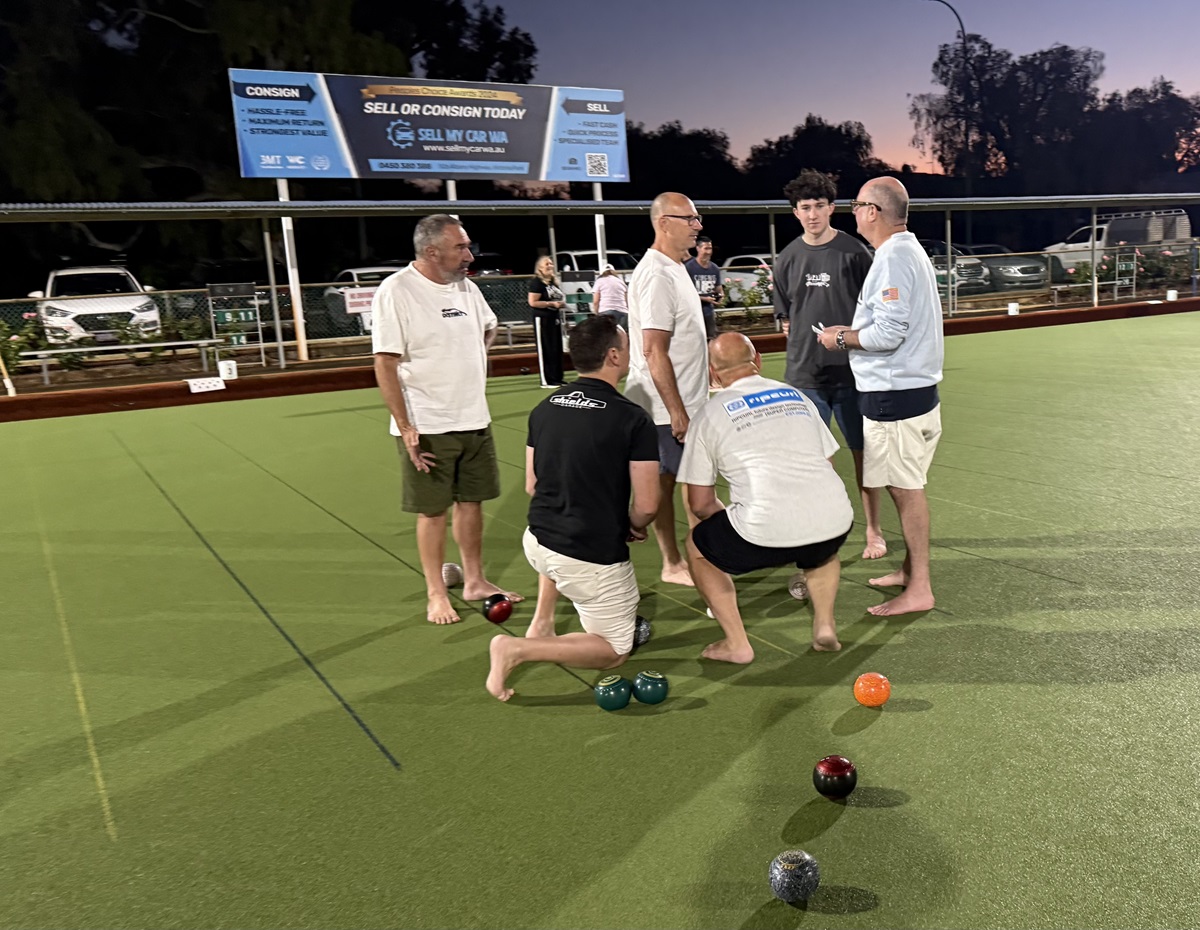 The Buffed Helmets maintain 3rd on the ladder thanks to grinding out a tiebreak win against Crawshaw on Grass Rink 1, and it was a win that looked extremely unlikely for most of the night as they lost the 1st Set 3-5, then faced the same scoreline with an end to play in the 2nd Set with their powerplay gone to waste, but Lee Carr and Kip came good and planted 3 close to win the set 6-5 to force that tiebreak, in which Scotty, the self-proclaimed diamond, pulled his finger out under pressure and stuck two within a metre, then survived a huge challenge from Crawshaw skip Wilko, who only just missed drawing shot with his first bowl, then his last bowl (The final shot of the game) missed sitting Scotty’s shot bowl by a Maxwell Smart, and the Buffs held on for a win that never looked like occurring until it did.