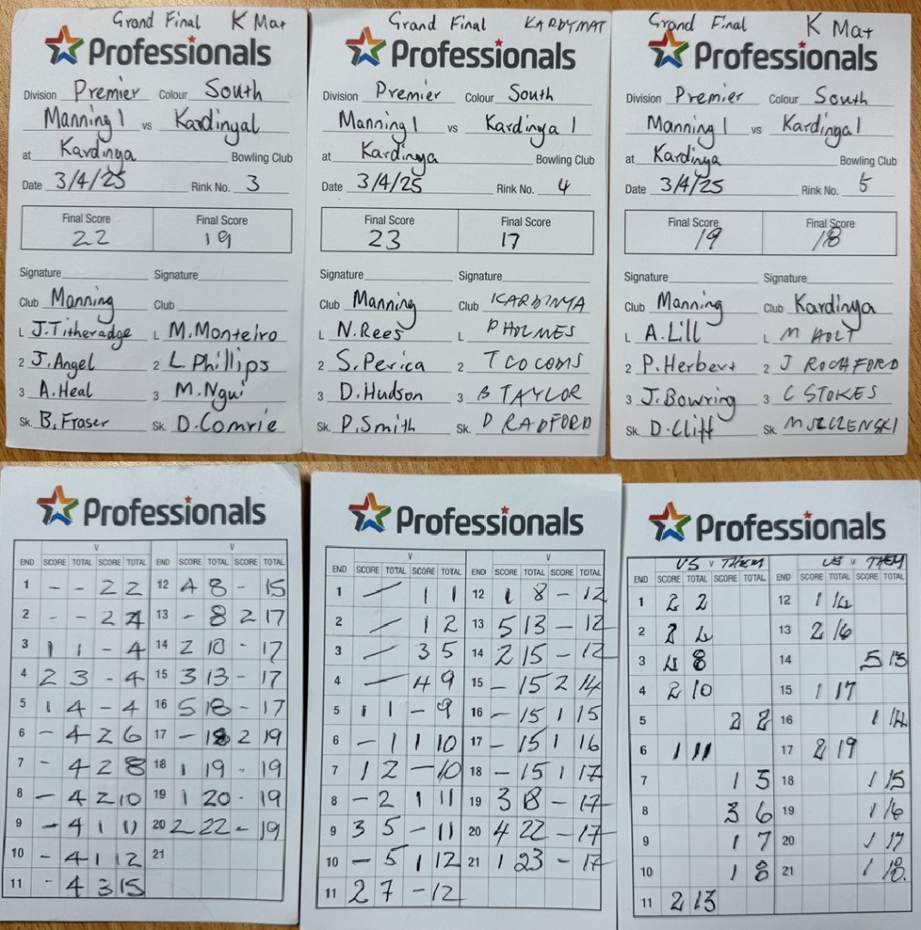 We then went on the road and defeated Cockburn in the Semi Finals a week later at Kardinya, came back to Kardinya a week later to face the Cats in the Grand Final, and after trailing by 11 shots at the halfway, soared over the top and won the flag 64-54 in a fantastic contest, capping it off by winning all 3 rinks away from home as Billy Fraser sealed the result with 1 end to spare by trailing the jack for 2 shots after being 5 down.