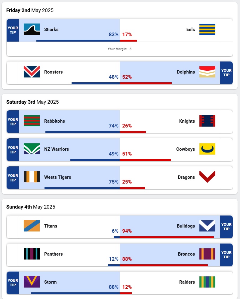 – And the last game has the Storm playing the Canberra Raiders, always an interesting matchup as we have Craig Bellamy coaching against the team he played for and occasionally struggles against in the coaches’ box, while Ricky’s Green Machine are capable of absolutely anything, from losing badly, falling behind badly and coming back, to winning an arm wrestle.